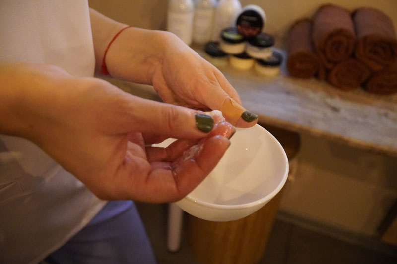 -Пилинг- делается скрабом для тела из квасцового камня с ароматом янтаря.